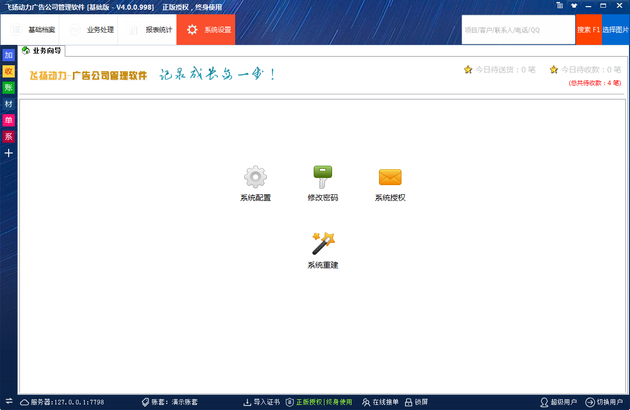 飛揚(yáng)動(dòng)力廣告公司管理軟件基礎(chǔ)版
